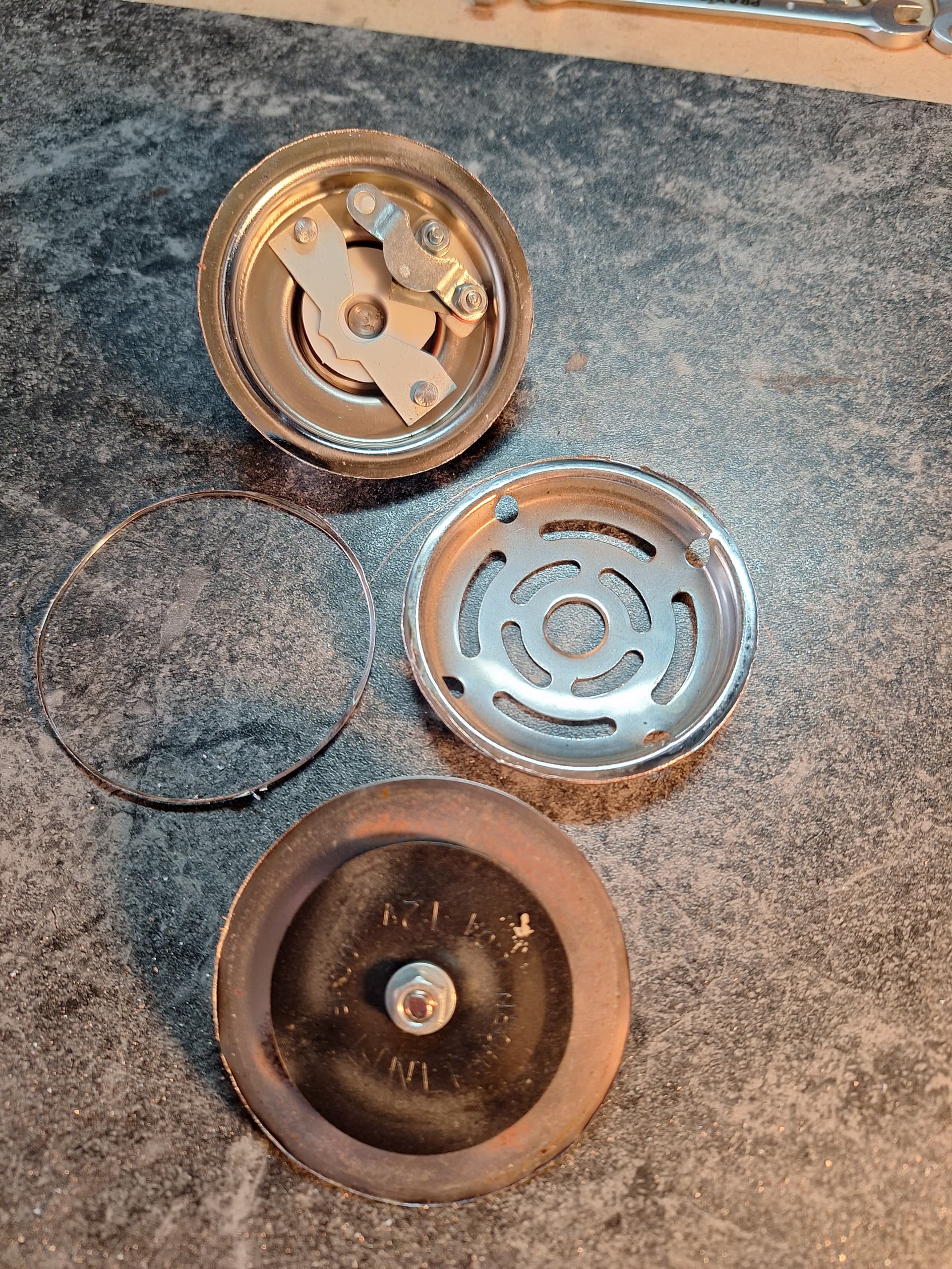 Kijk hier de oorzaak dat de claxon als een dronken Ier klonk. Puntjes ingebrand. Dus te weinig stroom door het spoeltje en dan klinkt deze te zacht.