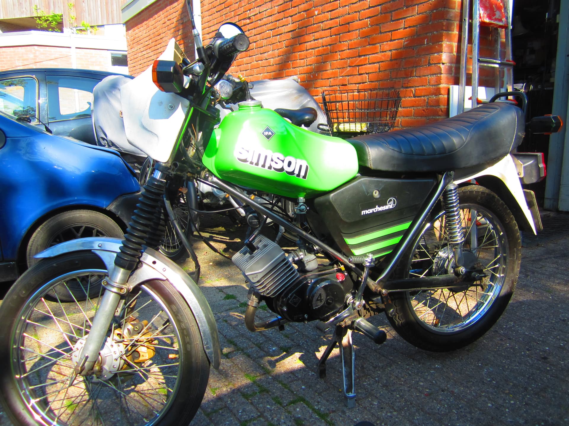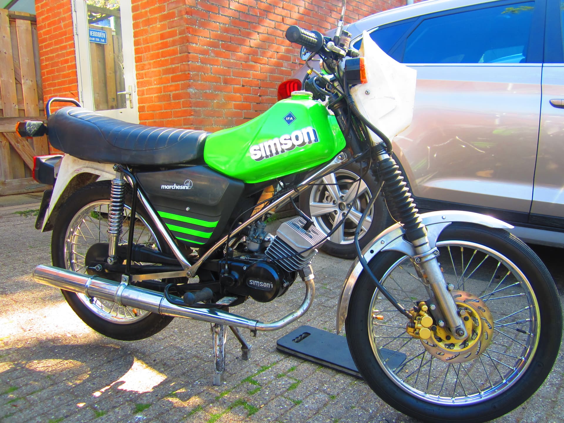 Hier de Simson S53 in een andere kleur Kawa groen ,.gelbgrun ,.of gewoon ral 6018 deze was oranje voorheen .Ook de buddy is een andere .