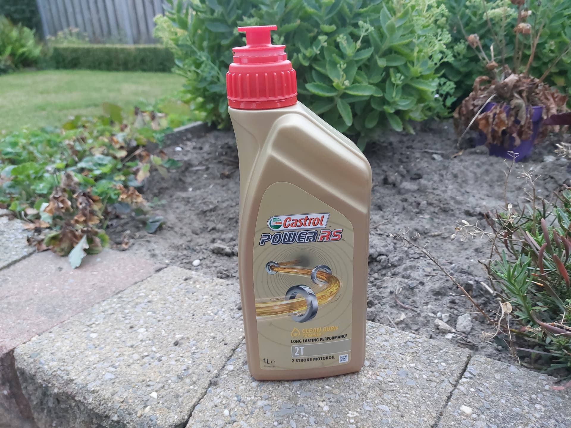 In die tijd Castrol 2-takt olie besteld en nu terug naar de (vroeger) voorgeschreven mengverhouding van 1:25 gegaan gemengd met Euro95 loodvrij (omdat de pomp hier geen Euro98 heeft) En dat kijkt beter te werken. En dat zonder verdere rookproductie.