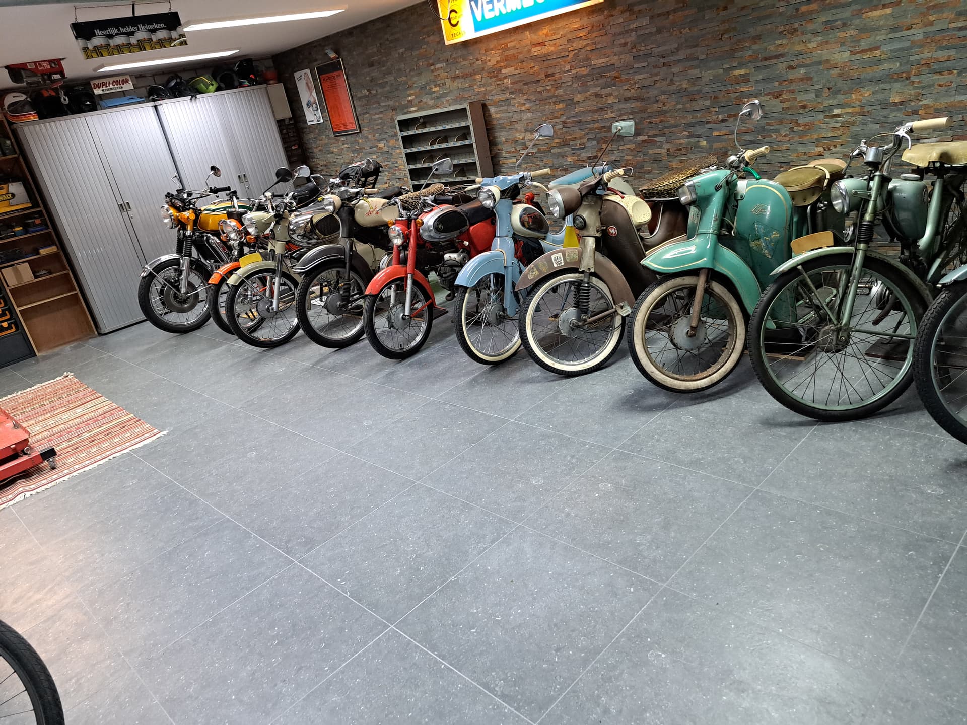 Vorige week mijn hobbyruimte eens aangepakt, er zat een coating op de vloer maar er zaten nogal wat beschadigingen op dus besloten om er tegels te leggen.