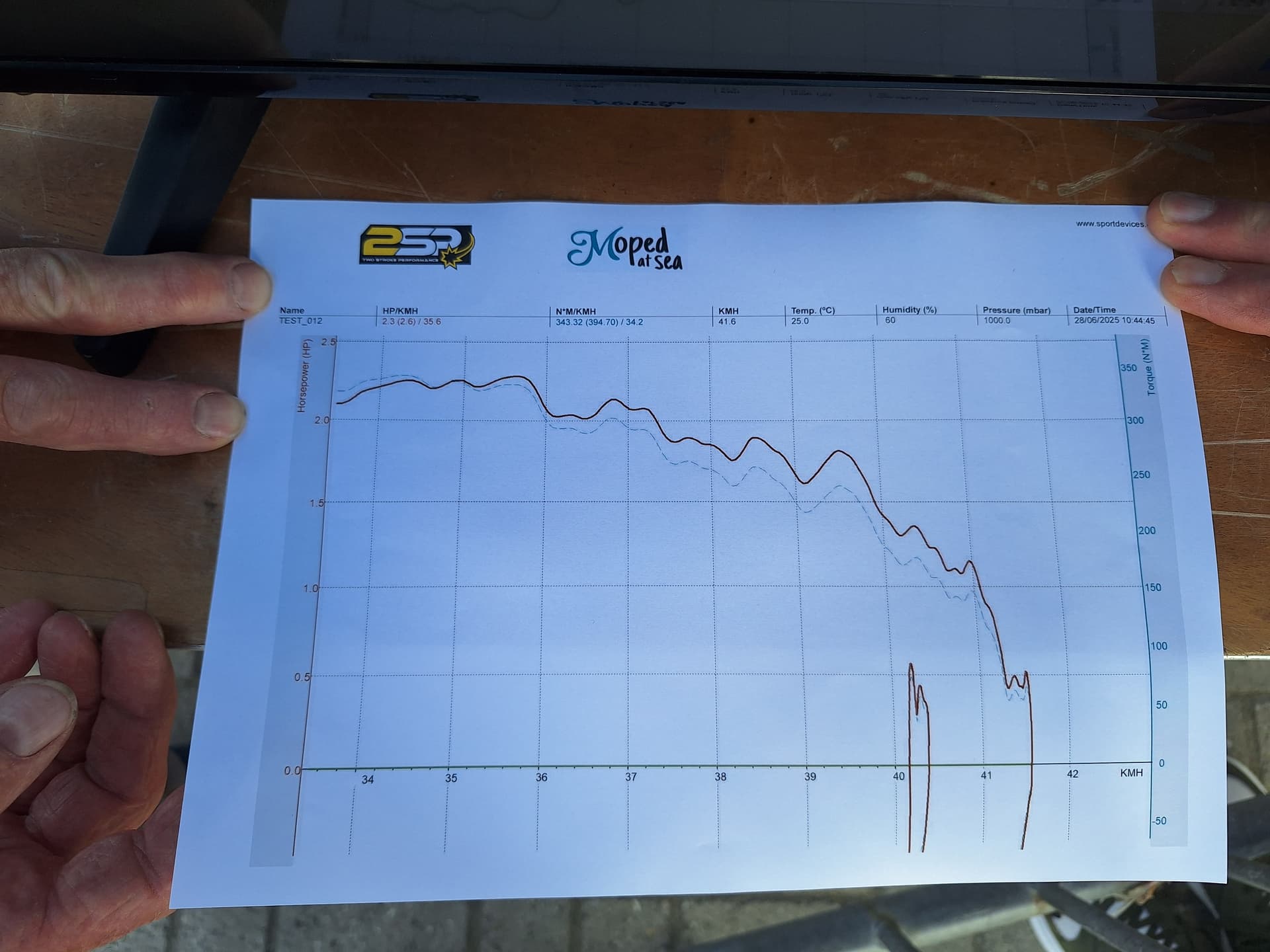 Wel een Tomos op de bank gezien met 15Pk. En dat is niet gek. Hij gaf aan de sproeier maat 1 stapje kleiner te gaan monteren en dat zal ongeveer 1 a 1,2 Pk schelen. Ja, zo nouw komt het. Als je een brandstof/lucht verhouding regeld op 1:12,7 dan heb je je maximaal vermogen. Die run heb ik niet gezien, maar misschien iemand anders?