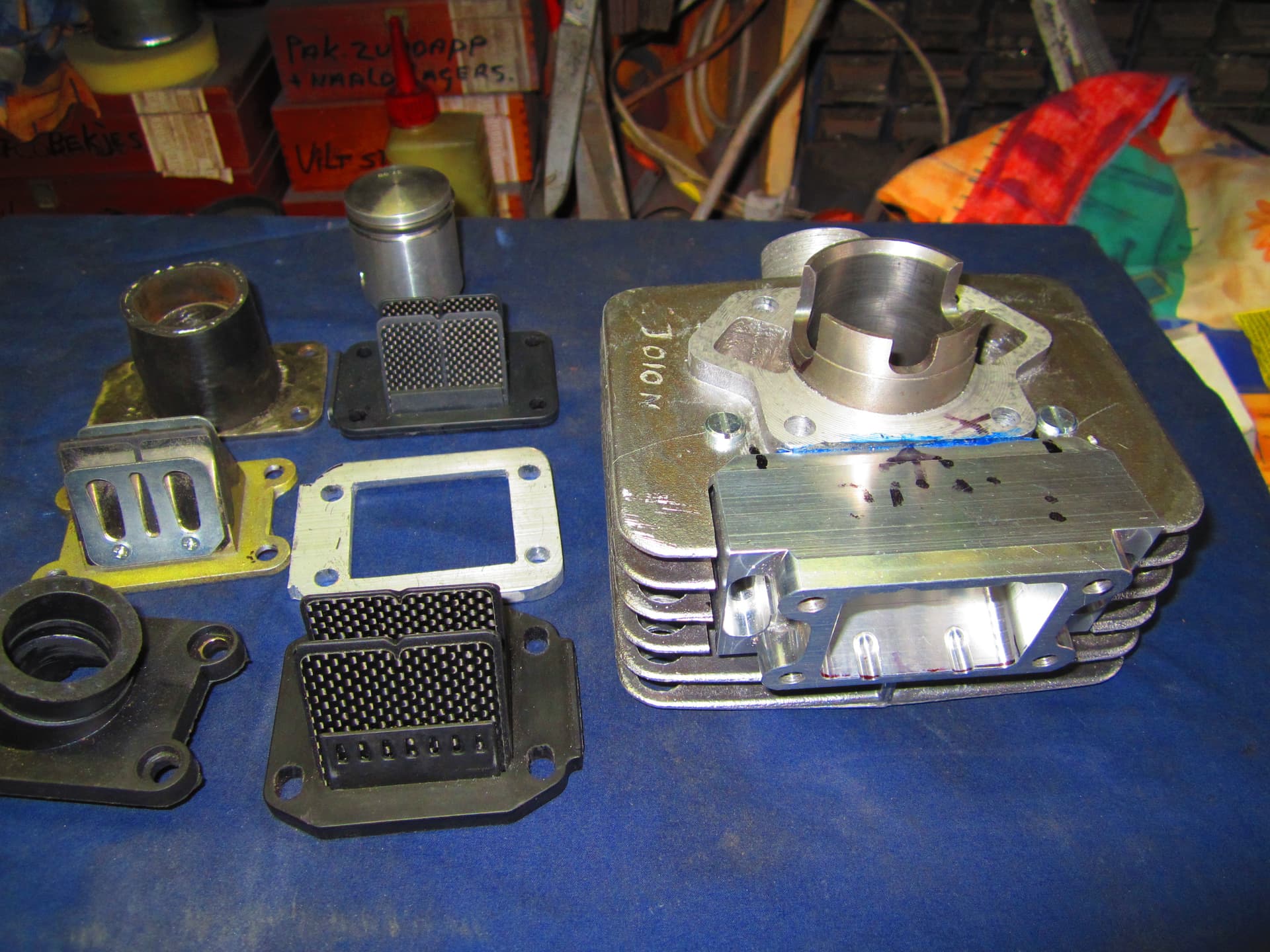 Paar foto s van Ben zijn optimaliseer werk ,. een simson cil met membraam huis en 8 kleppen in het membraamhuis .