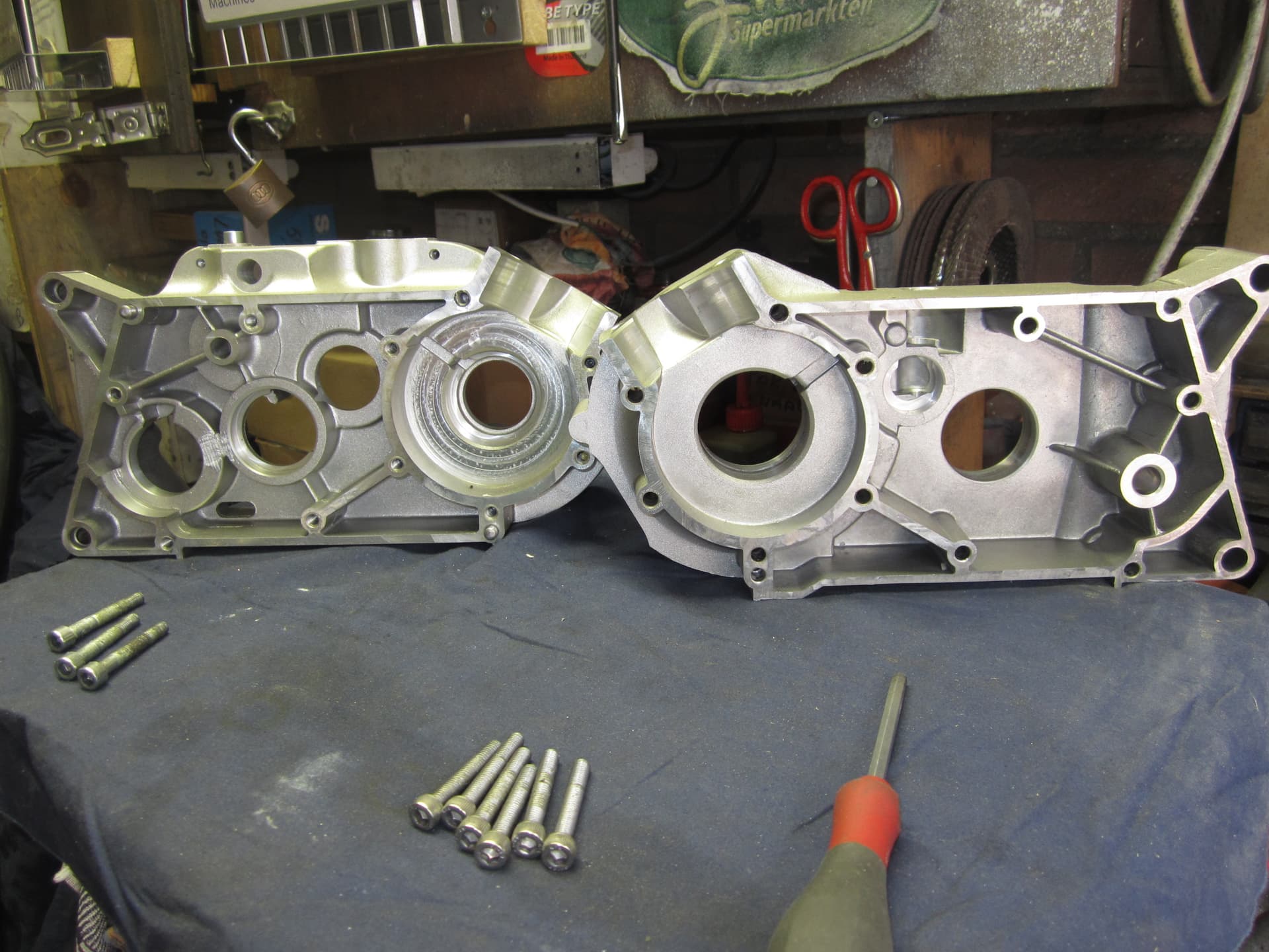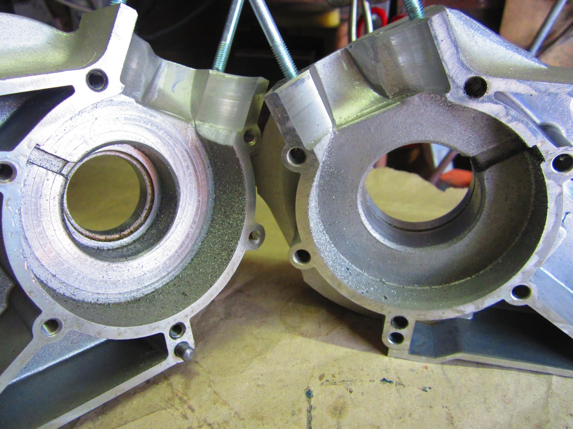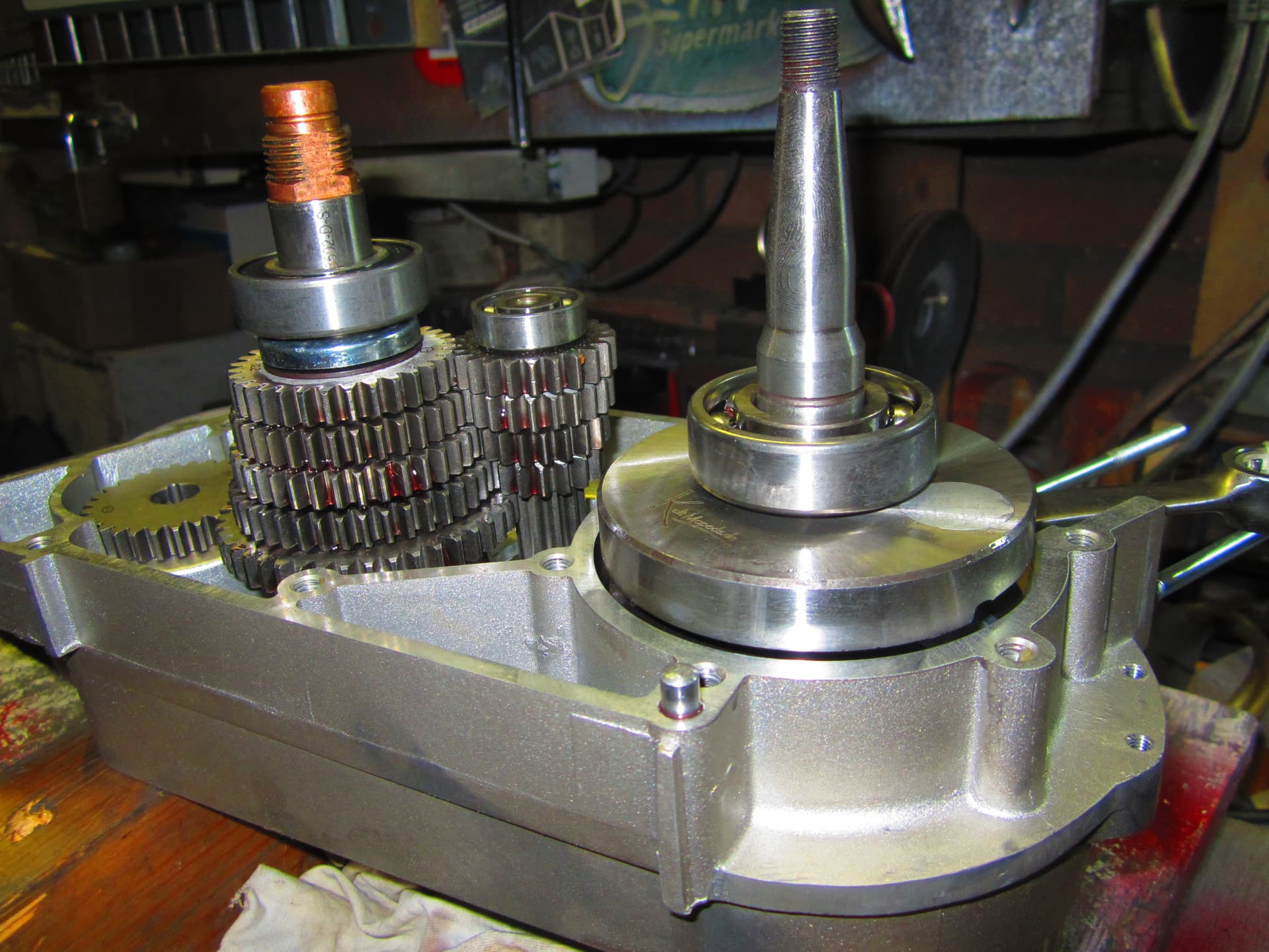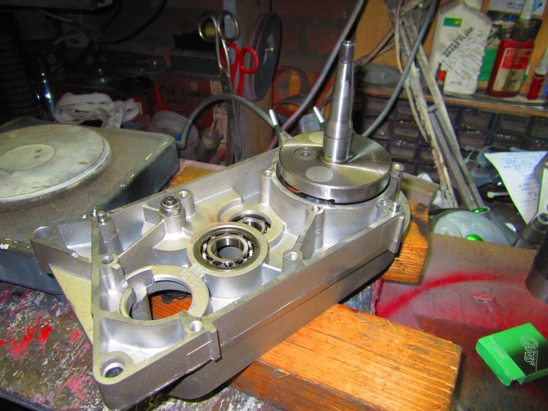 Na het frezen en het uitkuisen van het Simson blok er een stuk of wat lagers er in gezet ,.blok vulling zal ik maar zeggen .