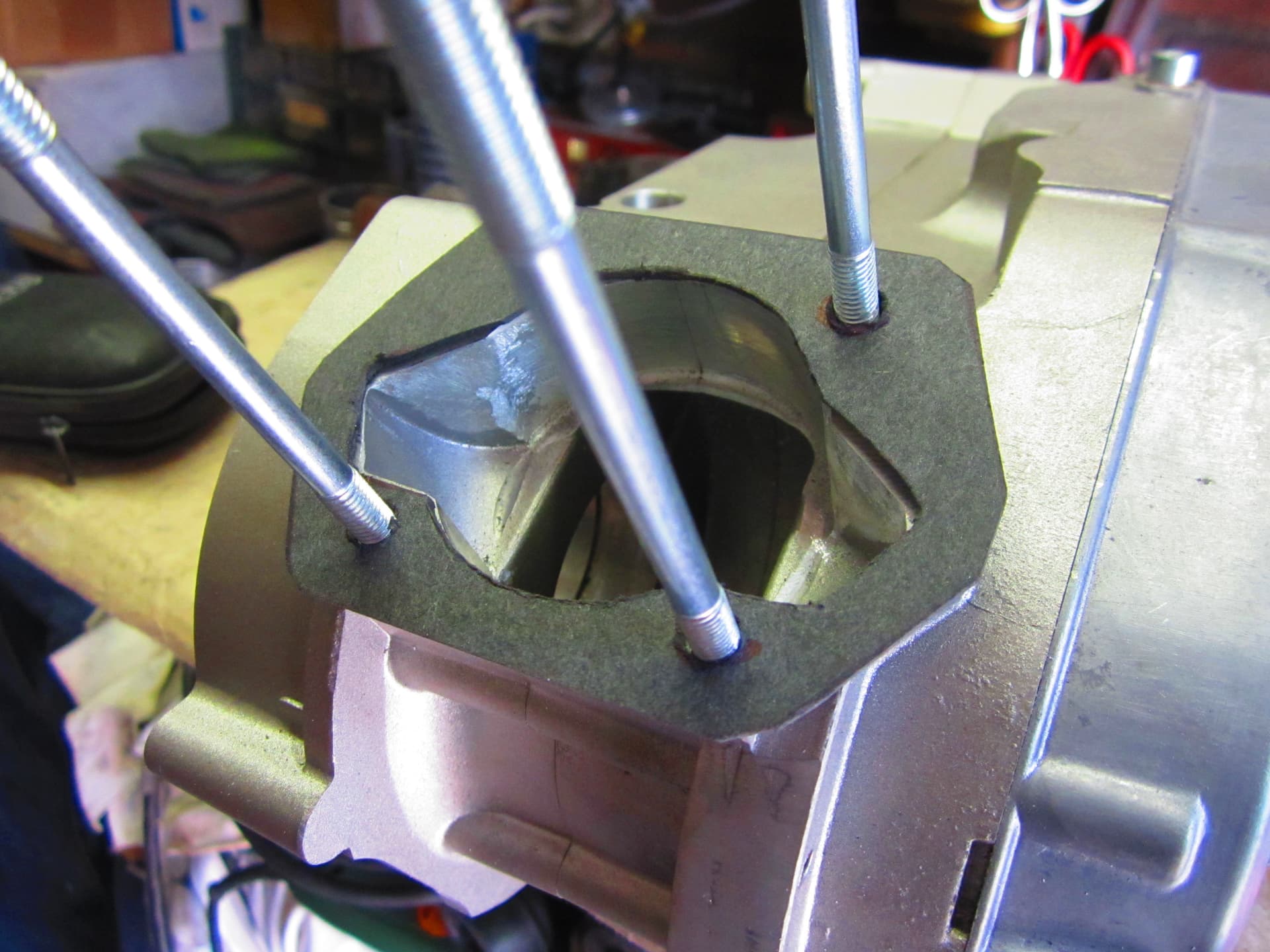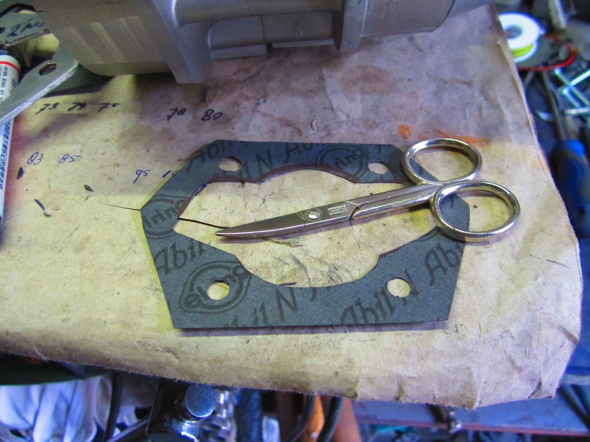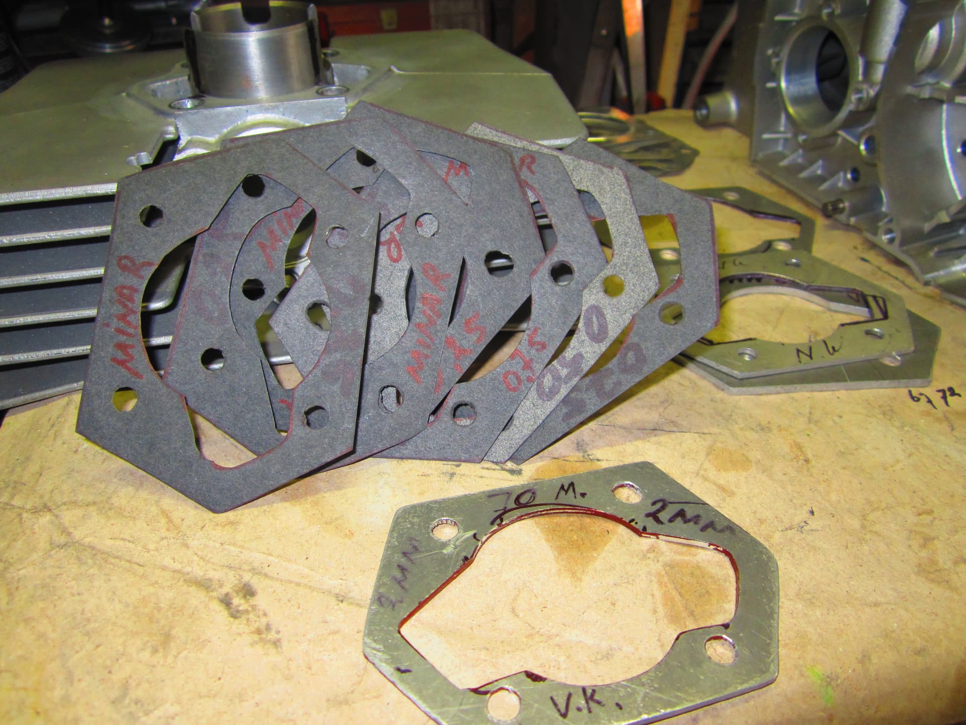 Gister nog een handje vol voet pakkingen gemaakt voor het Minarelli project ,de pakkingen die je kan kopen zijn wat aan de smalle kant .