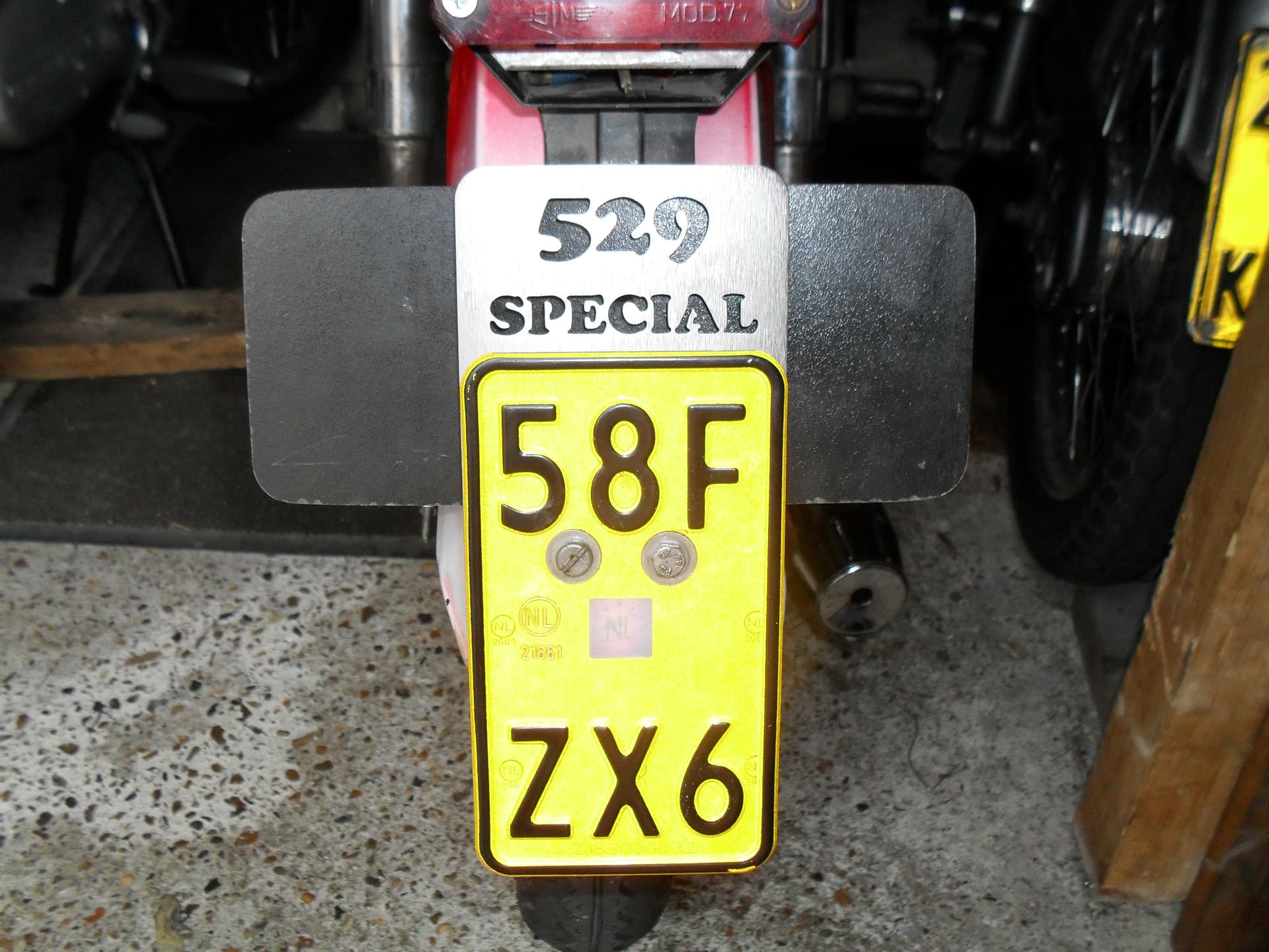 Ja en dan heb ik nog veel meer trukjes uit gehaald met deze brommer ,is ook uit de touwen gevallen percies op de tank dop ,maar dat is ook weer goed gekomen . Het logo op het zijdeksel is gespoten met het kenteken waar 529 special in gelazerd was