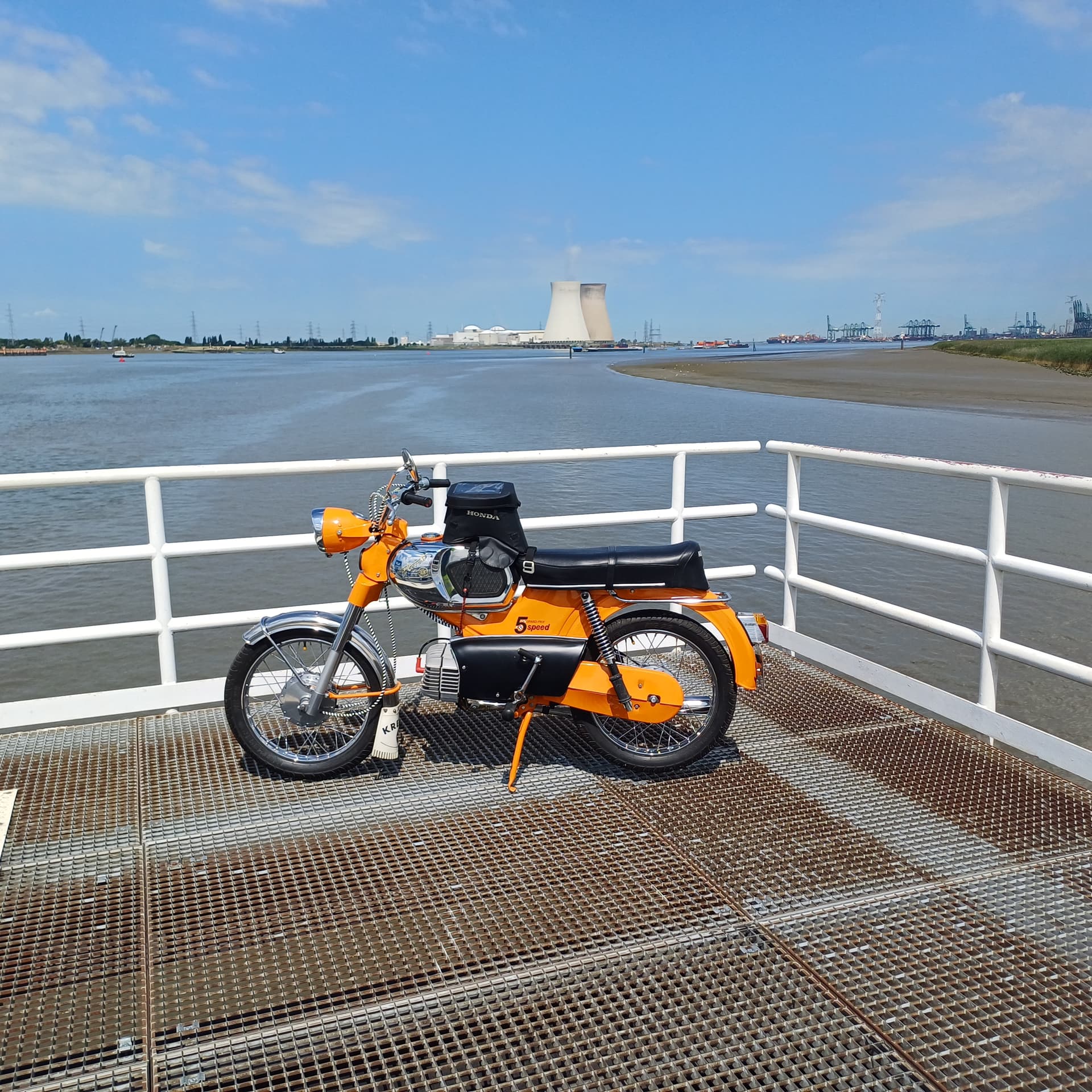 Hoi vandaag een rondje antwerpen gedaan vertrek om 945 langs de westerschelde via terneuzen en door de westerschelde tunnel terug de brommer om 1715 weer op de standaard gezet mooie rit alleen de schelde oversteken ging niet wat ik wilde eertste mogelijkheid vaarde de pond niet tweede mogelijkheid de fietstunnel deed de lift het niet derde mogelijkheid een gratis pont ik heb op fietsknoop puten gereden maar op sommige fietspaden mogen een A brmmer en B brommer rijden dus wel wat gepuzzel heb een afstand van 185 km gereden met toch wel een beetje zeer zitvlak leuke rit mooie weggetjes tot de volgende