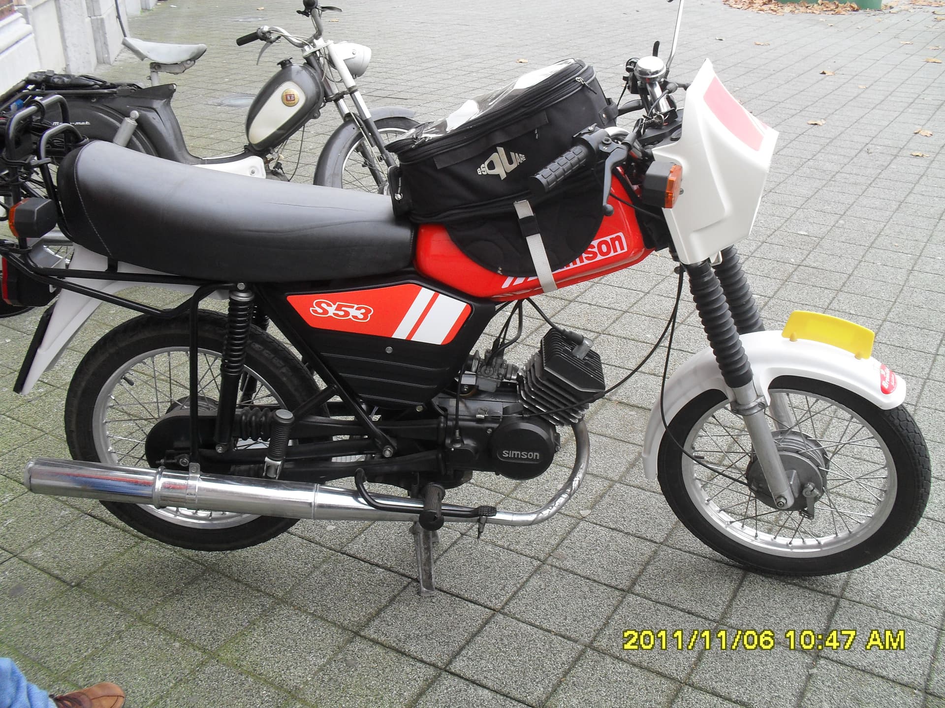 Dit is de Simson van het model S 53 van een ander clublid heeft 4 versnellingen en 16 inh wielen super fijne brommer om te rijden
