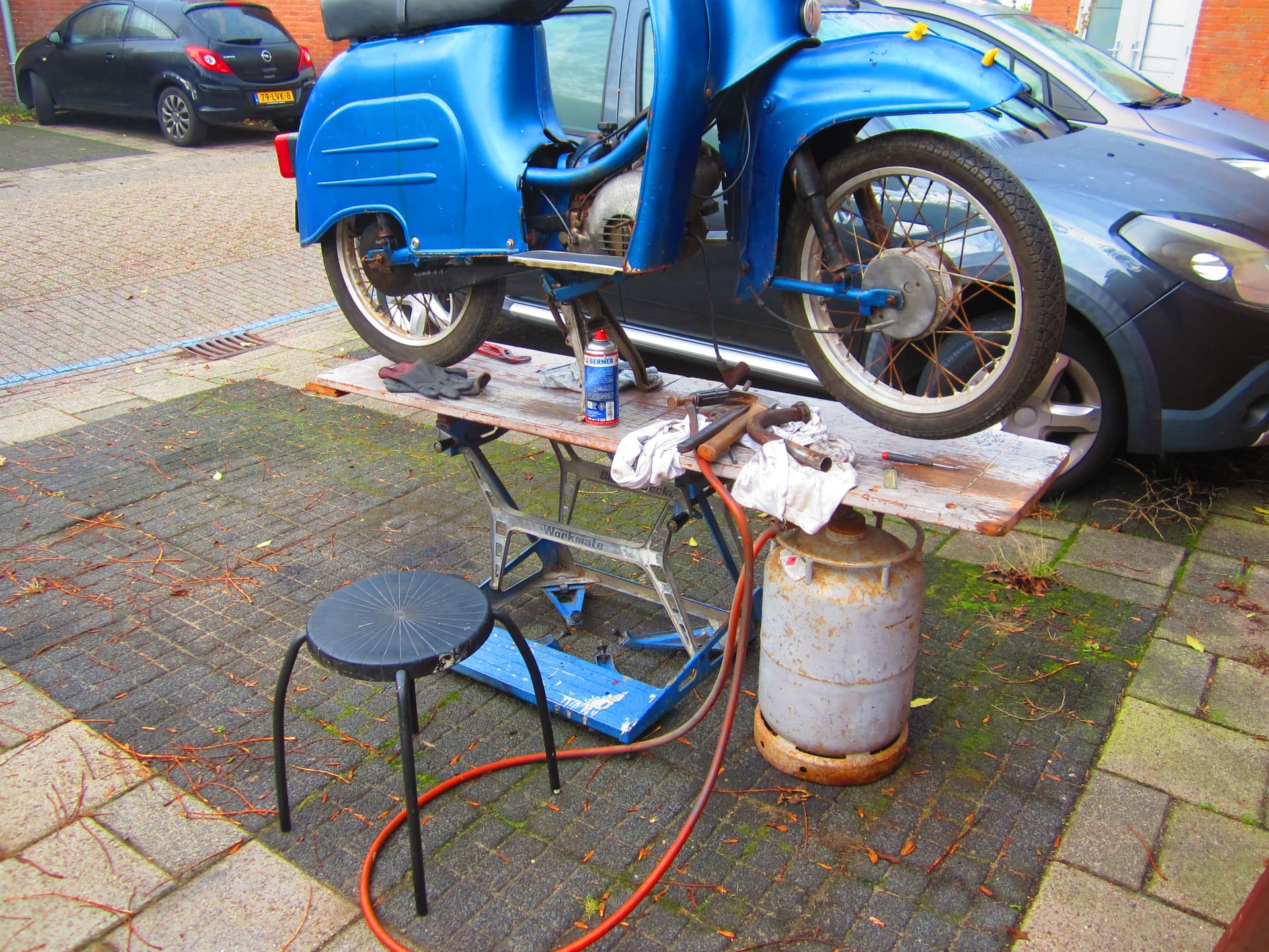 Dacht dat zal ik eens die klus even klaren ,maar de gas brander en de lucht sleutel ,de moordenaar en de grote waterpomptang en div hamers .
