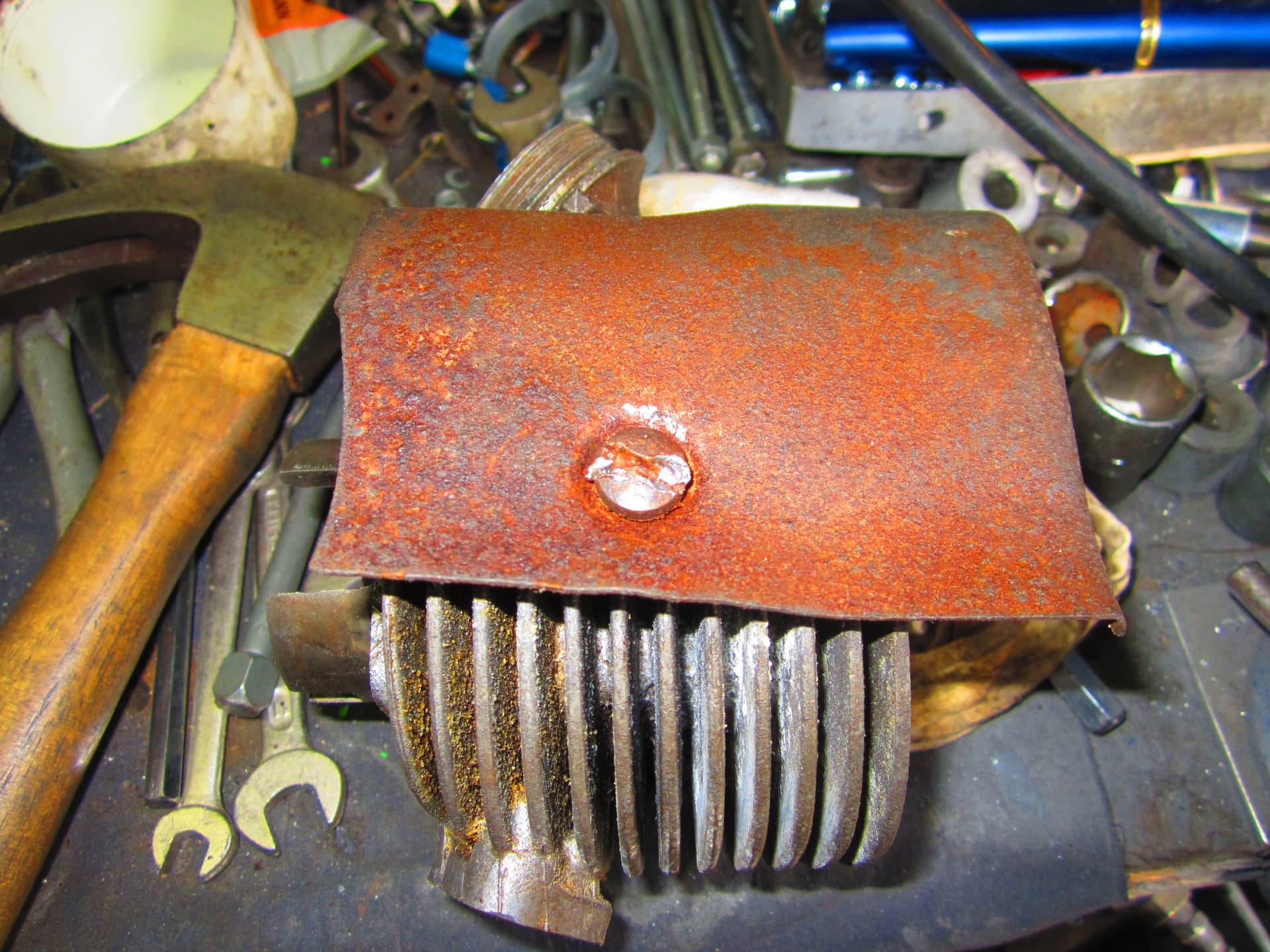 Dit roestige blik zat op de cil met 1 schroef ,bijna een half uur om het er af te krijgen