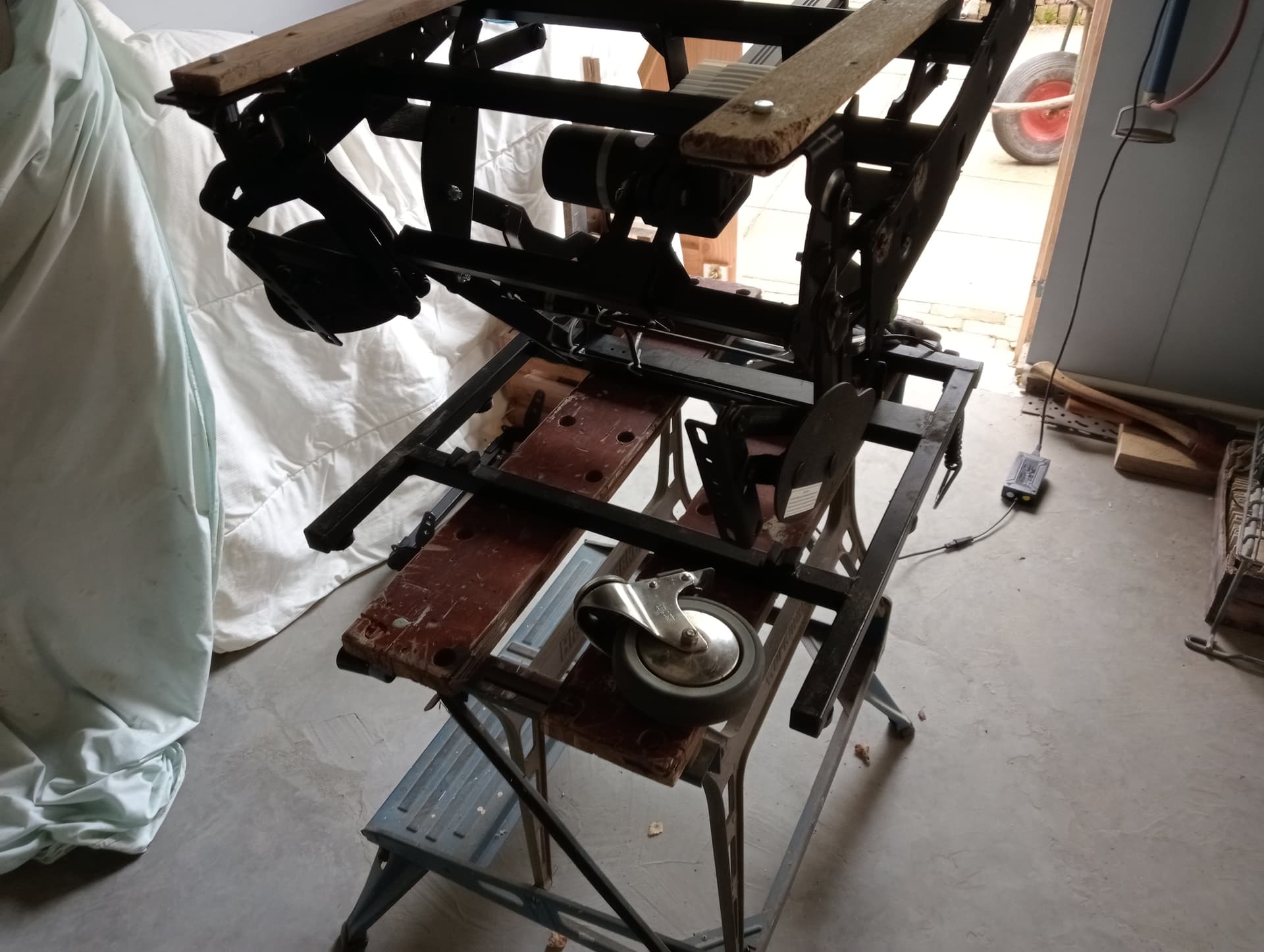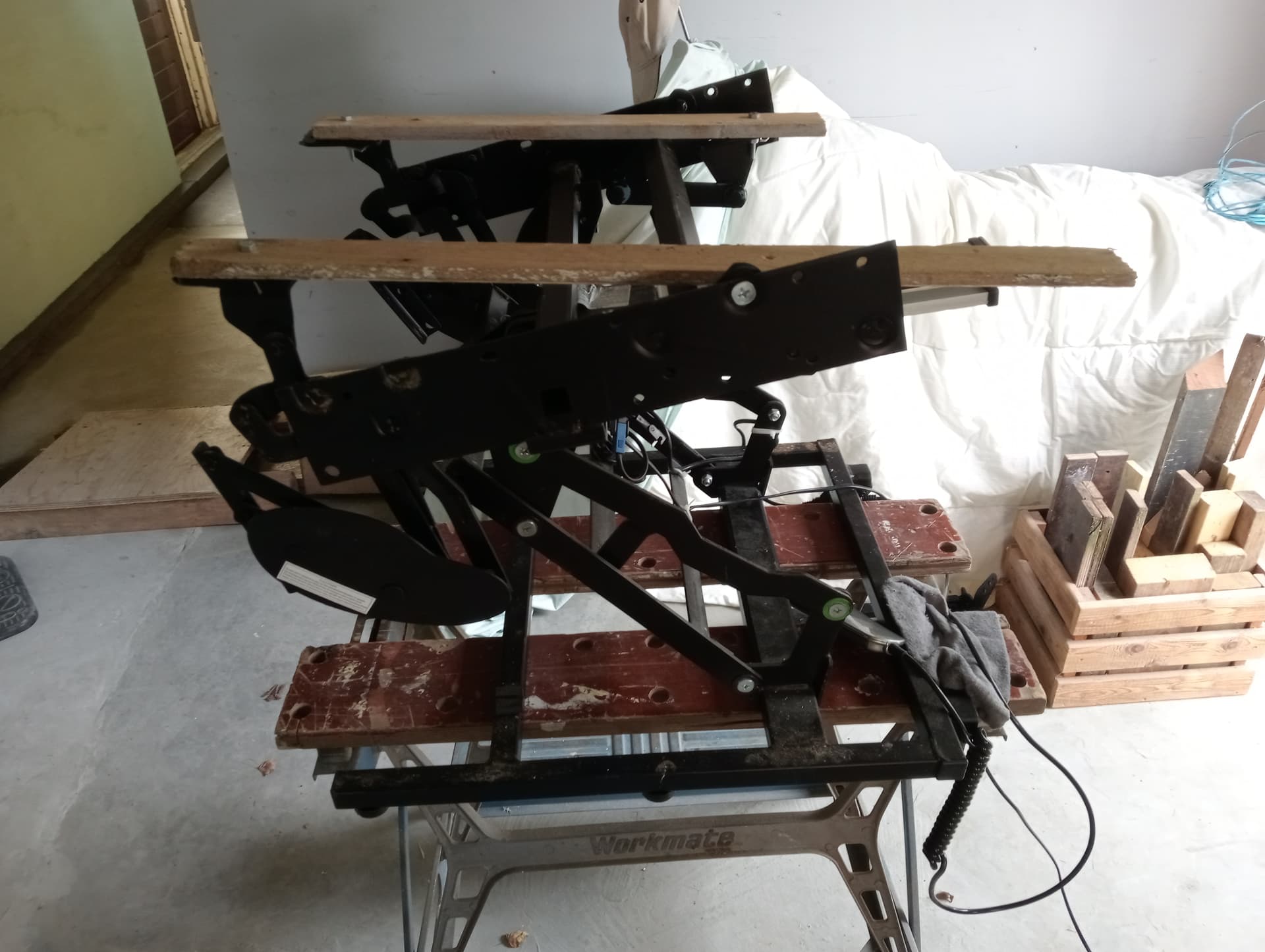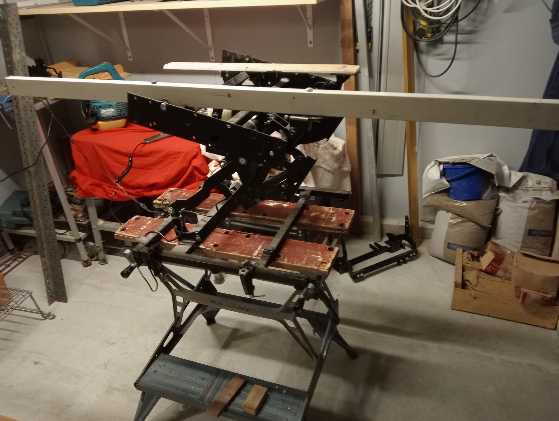 Ik heb een uitdaging gevonden om het frame van een staop stoel te gebruiken en om te bouwen naar een elektrische heftafel voor mijn brommer. Dit project pak ik tussentijds nu op, omdat de buitenzijde van mijn Hobbyschuur even geparkeerd is ivm de komende winter en minder betrouwbaar weer. Nieuw geïsoleerd dak er op.