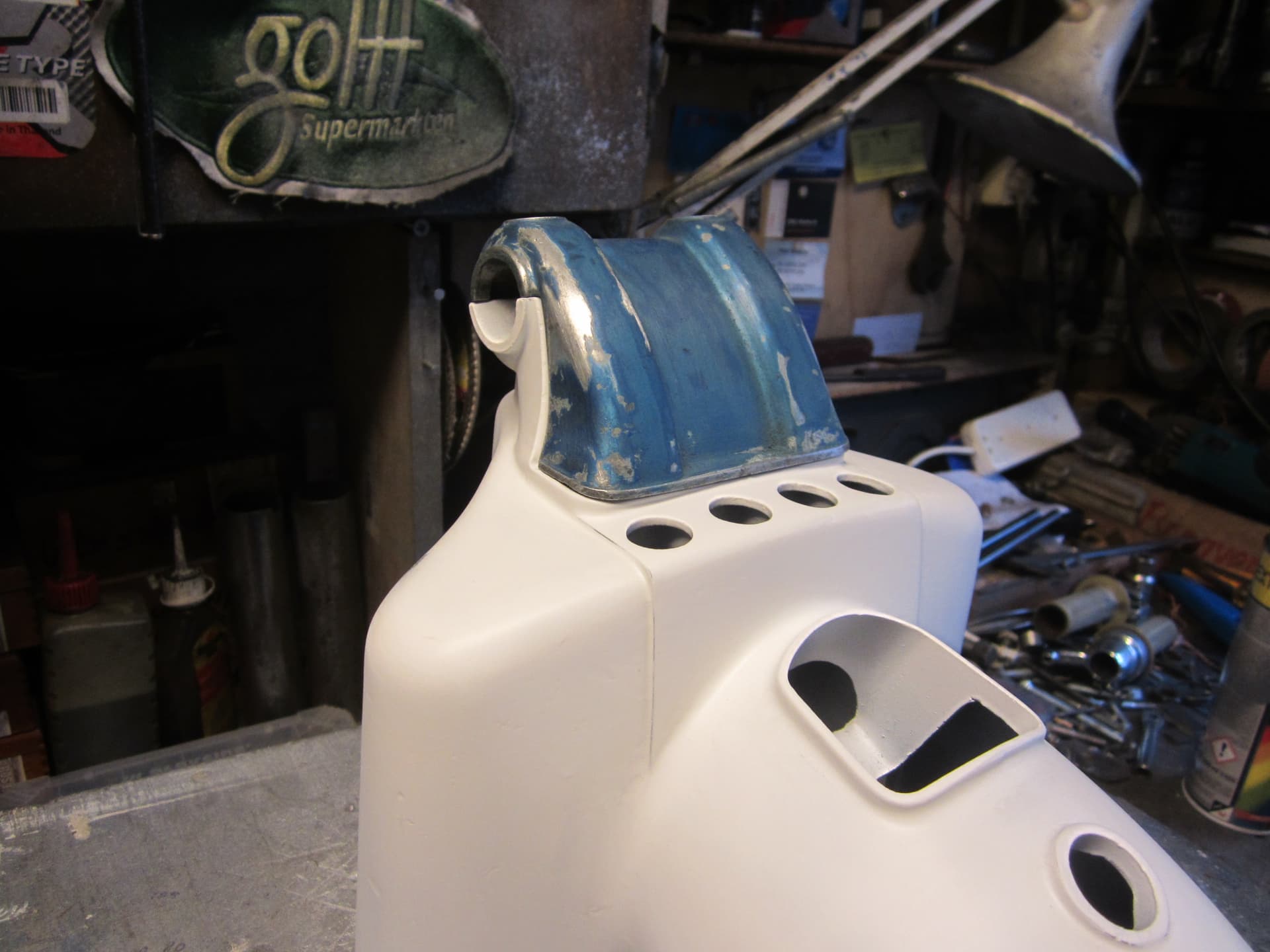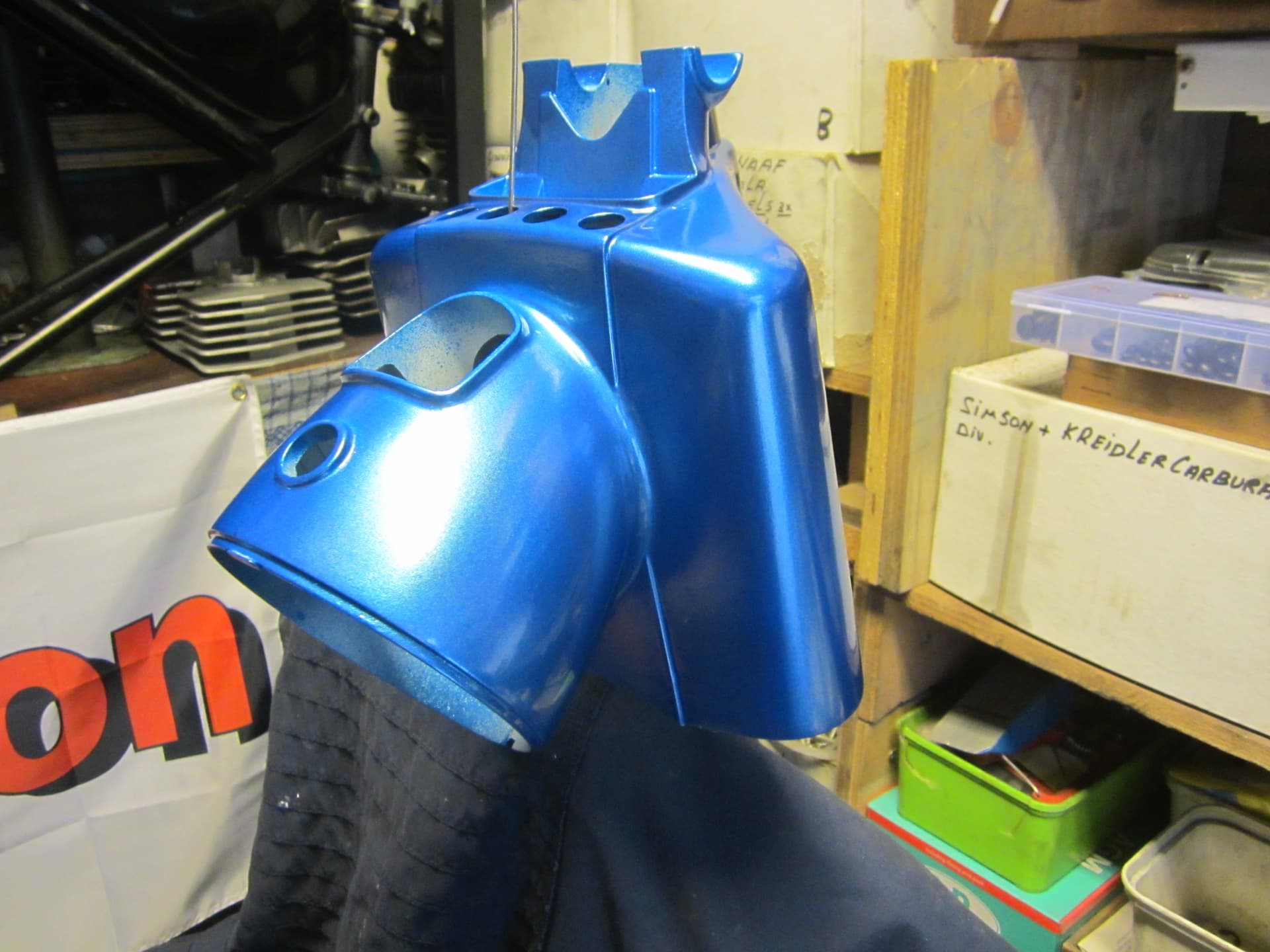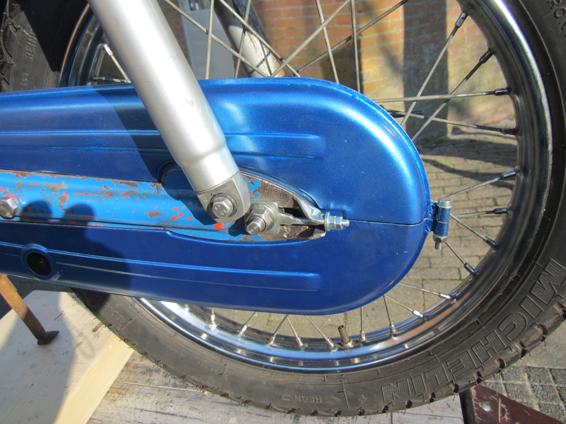 Voor het mooie zou deze nieuw gespoten moeten worden .,nog 2 bussen verf staan ,zundapp blauw .