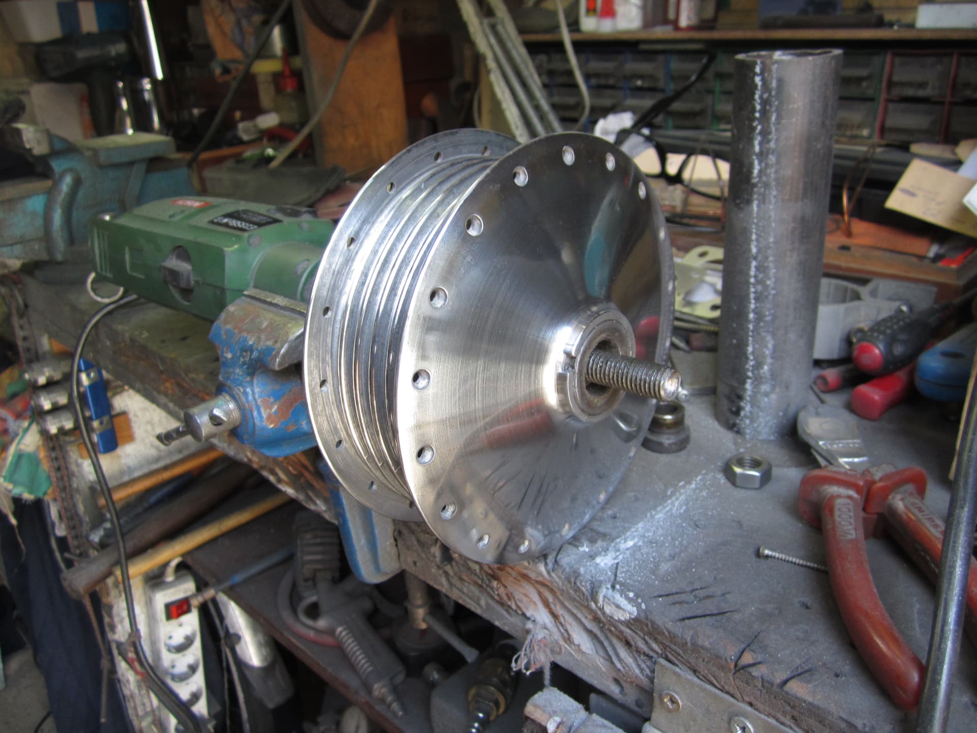 Stel je koopt ergens een naaf, knapt hem op en wilt er een wiel van maken…